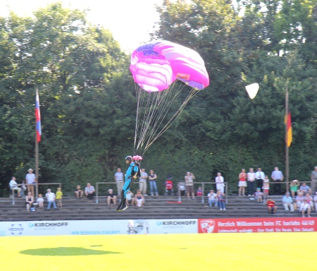 Endlich konnte der Fallschirmabsprung mal wieder stattfinden - Kaiserwetter bei der Musikparade.